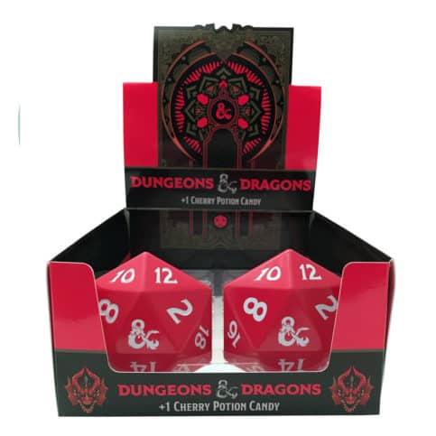 Dungeons & Dragons tins come filled with cherry sour potion bottles. Packed 12 per display. Browse all of our Boston America products here.