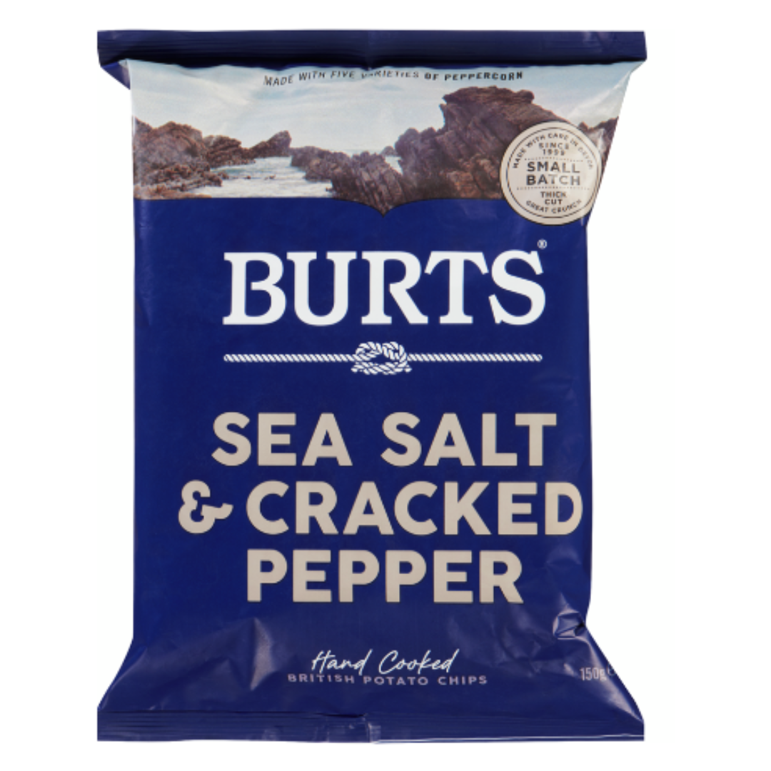 Burts Sea Salt and Cracked Pepper Hand Cooked Potato Chips British 10x150g