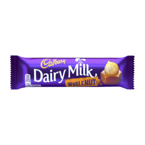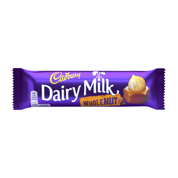 Cadbury Dairy Milk milk chocolate with whole hazelnuts.