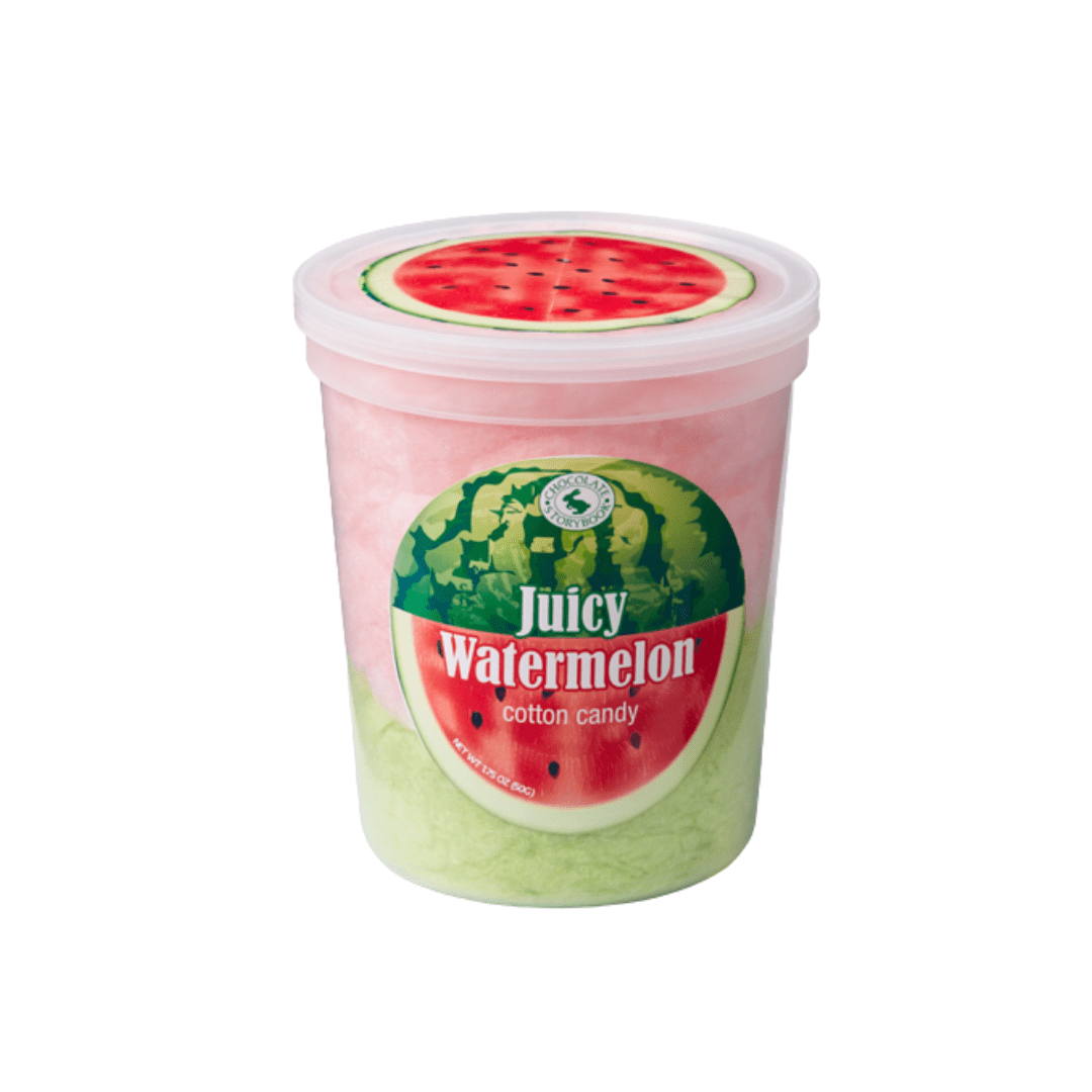 The tubs are 5 inches tall by 4.5 inches in diameter filled with 1.75 ounces of cotton candy. Shelf life is 1 year if unopened, stored out of hot heat and direct light.