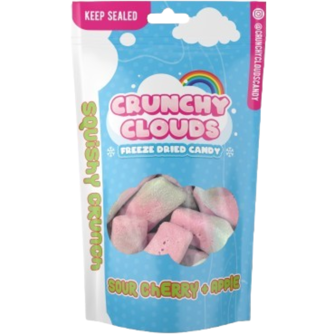 Crunchy Clouds Squishy Crunch Squashies Sour Cherry & Apple British Peg Bag 10x50g
