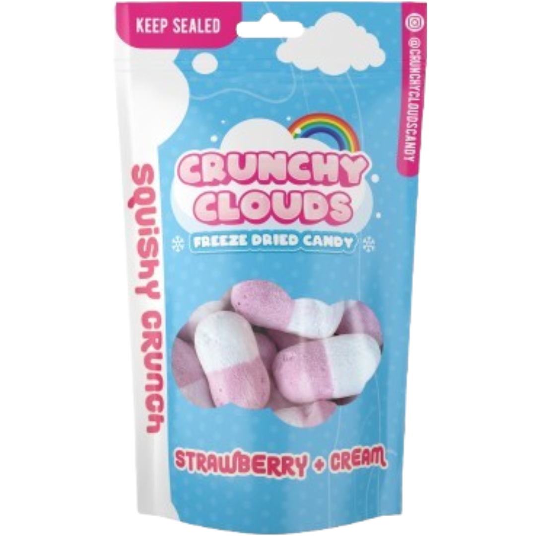 Crunchy Clouds Squishy Crunch Squashies Strawberry & Cream British Peg Bag 10x50g