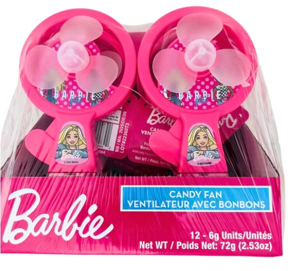 Barbie candy toy with a fan. Mini Barbie Fan is a travel portable and it is also suitable for outdoor areas. Once your child fully cools down they can easily detach the bottom container allowing easy access to the sweet, delicious, and delightful heart-shaped candy inside.