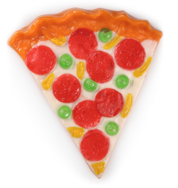 After we created our widely popular Giant Gummy Pizza, people have kept asking us if they could get a slice. We were happy to oblige, New York style! Our Giant Gummy Pizza Slice boasts 3/4 of a pound of some of our most popular gummy flavors. Cherry pepperonis along with sour apple and lemon flavored peppers sit atop a layer of berry blast cheese and orange gummy crust.z