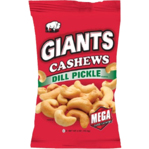 Try the surprisingly Dill-icious Flavor of GIANTS Dill Pickle Cashews! GIANTS Cashews are mega in both size and flavor. These whole Cashews are rich in protein and other nutrients.
