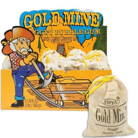 Gold Mine Gum is the nostalgic candy from your past—the #1 selling golden nugget gum in a re-sealable burlap bag! The juicy, flavorful, fruit flavored gum will bring back the days of your youth—and introduce your kids to the best gum the past or present has to offer. Let Gold Mine Gum bring a smile to your day.