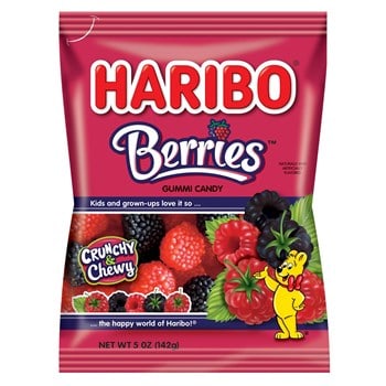 Satisfy your sweet tooth with deliciously sweet Haribo Berry Gummies. These fruit flavored gummies are made up of a soft, clear gummy center, covered with black or red nonpareils. They are perfect for an afternoon snack, or even as wedding favors.