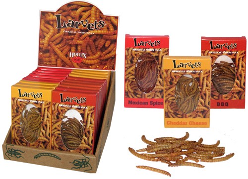 Great gross-out candy! The original worm snacks. These larvets come in 3 flavors: Mexican Spice, BBQ and Cheddar Cheese. The flavors are subject to the manufacturer’s packaging. Browse all of our Hotlix products here.