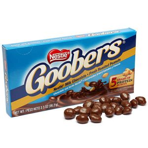 Goobers are fresh roasted peanuts covered in milk chocolate.