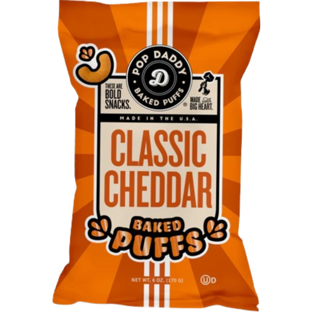 Bold cheese, big puff! Light, airy, and perfectly puffy, our Classic Cheddar Baked Puffs deliver lipsmacking bold flavor in every bite. Gluten-free friendly and certified Kosher, these crave-worthy puffs are simply uncomplicated yet irresistibly perfect.