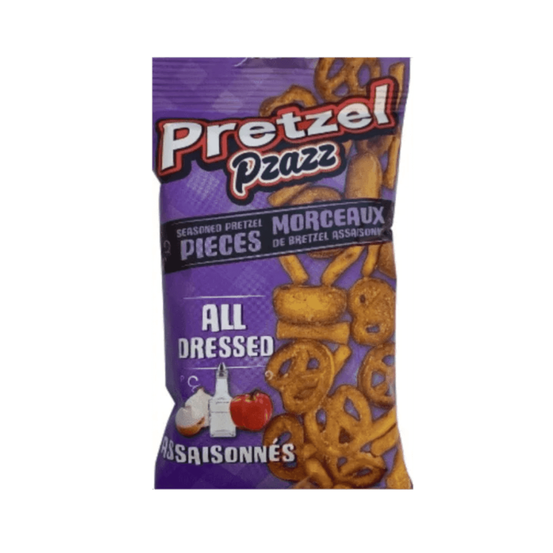 Ketchup, barbecue sauce and salt & vinegar mix of seasoned pretzels in an assortment of shapes and sizes.