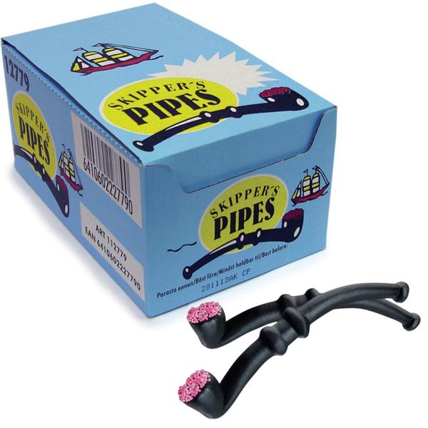“Since the early nineteen thirties, the delicious liquorice pipe has been the Skipper’s steady companion on the long journeys on the seven seas. Every time the ship is in a friendly port the Skipper makes sure to pile up with enough Skipper’s Pipes so the crew can make their journey without worrying about running out of their favourite companion.”