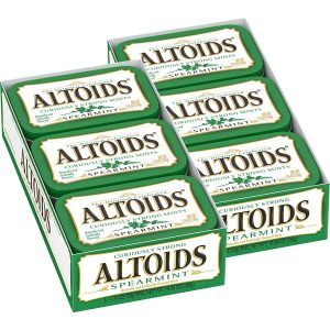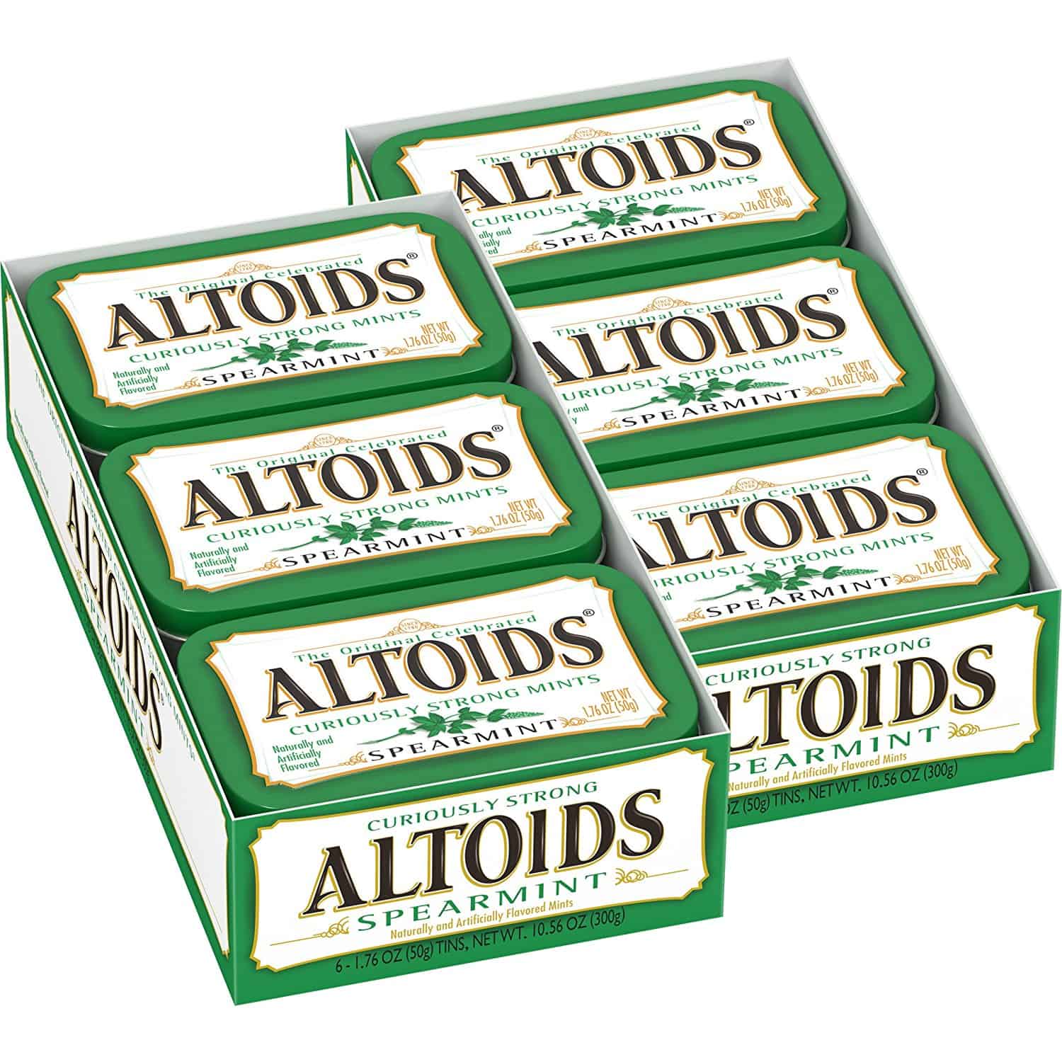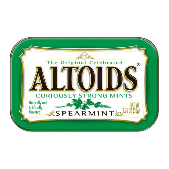 Altoids Spearmint are curiously strong breath mints will help keep you feeling fresh for every adventure. Packaged in a pocket-sized tin, it’s easy to take Altoids Spearmint Mints on the go, keep them in your car or stock them in your desk.